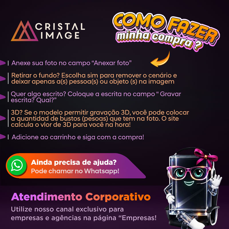 Peça em Cristal Óptico 100% translúcida, sem coloração ou ranhuras na medida 145x110x30mm.